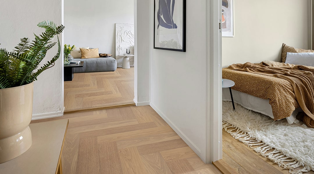Новая коллекция паркетной доски TRAVEL в формате Herringbone (HB). Этот элегантный вариант укладки, известный как «английская ёлка», придаст любому интерьеру выразительности и архитектурной глубины.